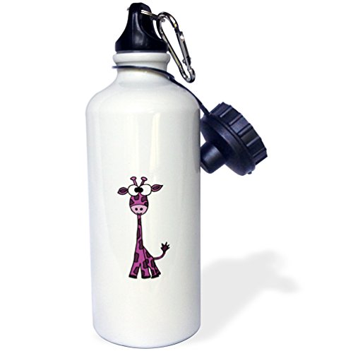 3dRose Cute and Funny Purple Giraffe Sports Water Bottle, 21 oz, White