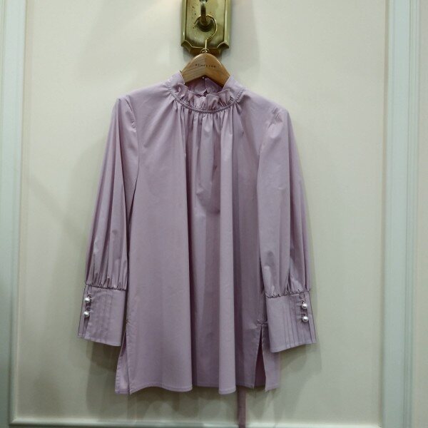면스판 블라우스 목부분샤링을주어 더욱여성스럽게 연출할수있는 블라우스입니다