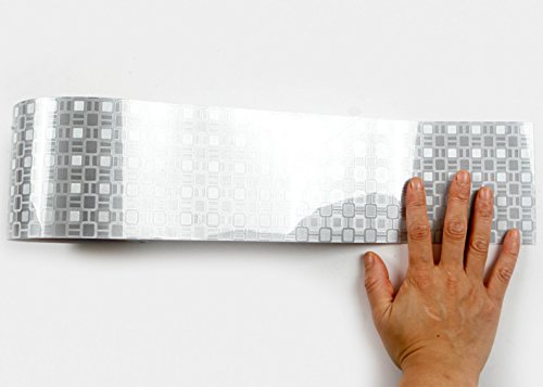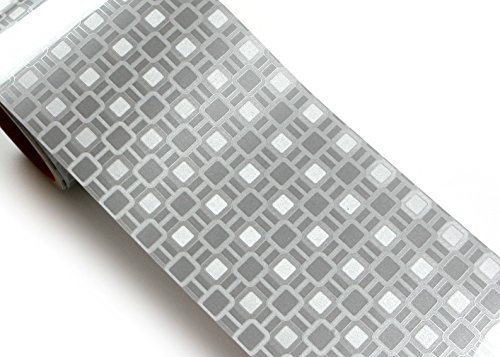 -. Title : Peel & Stick High Glossy Border Sticker Reverse Check Silver Pearl Contact Paper Self-adhesive Removable Border Roll P5148-1B : 3.93 inch by 13.12 feet