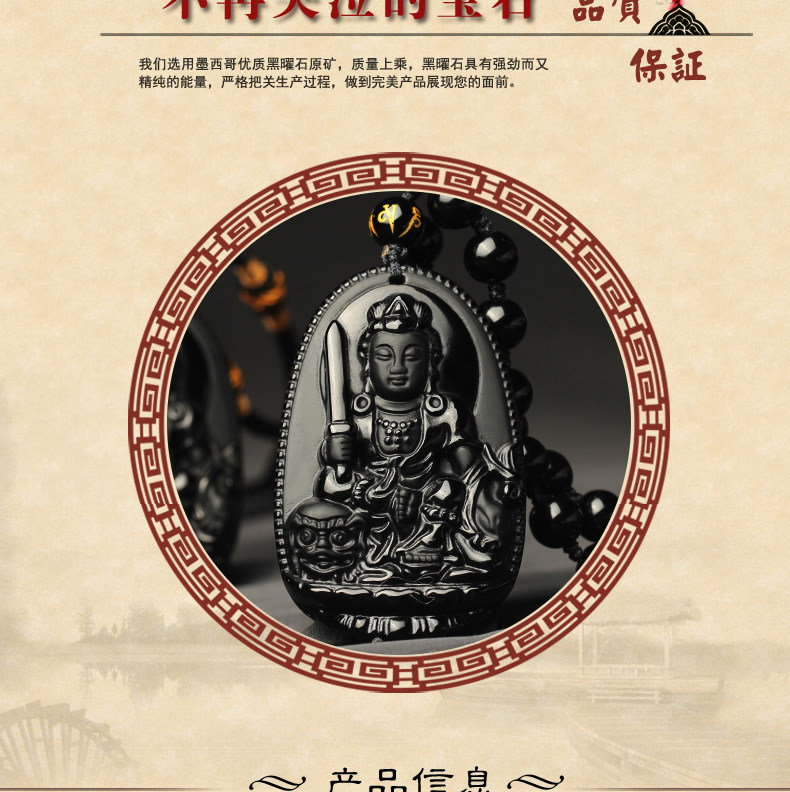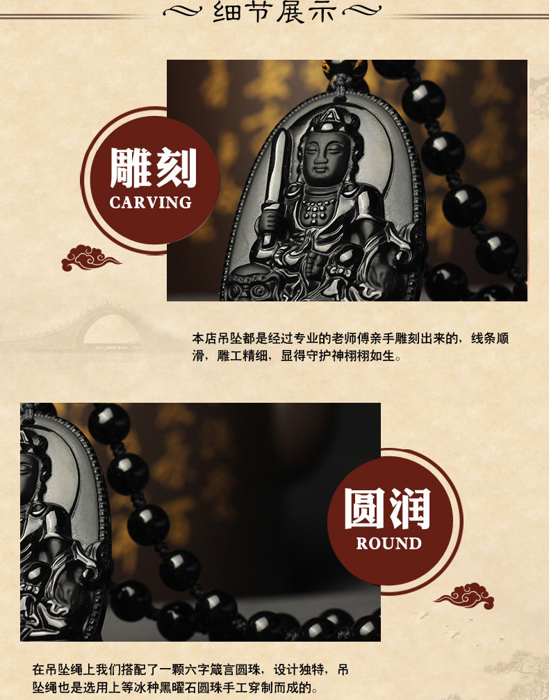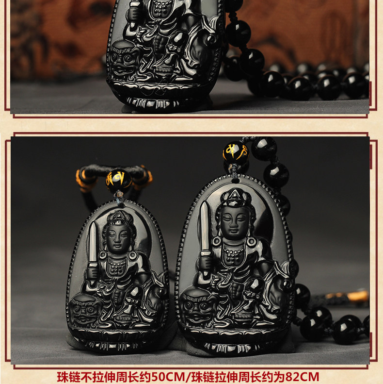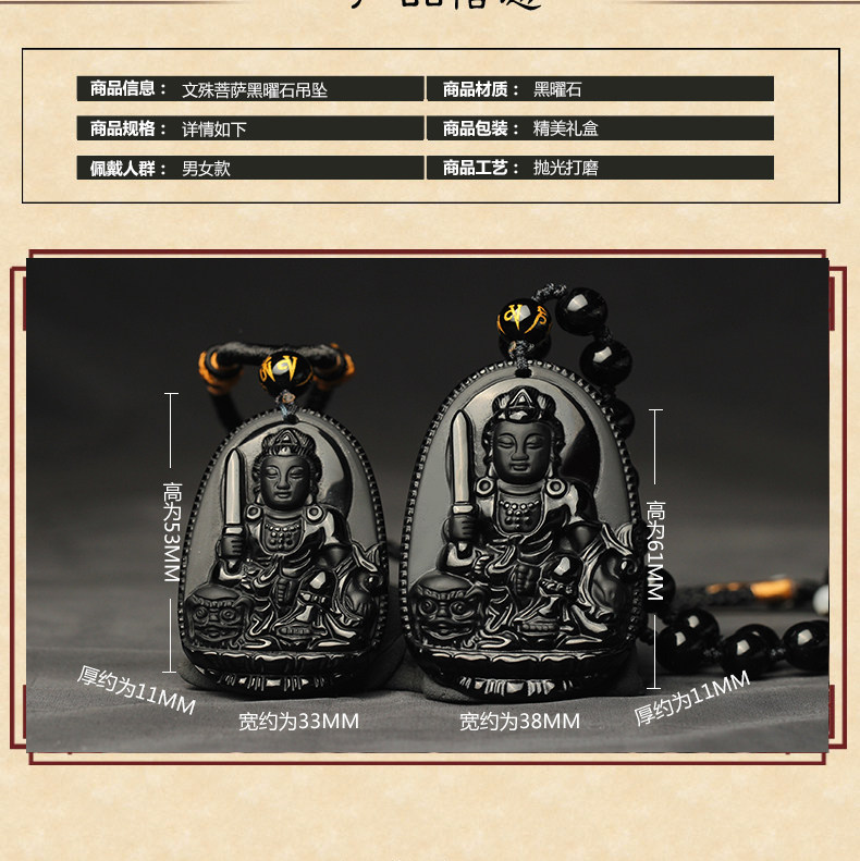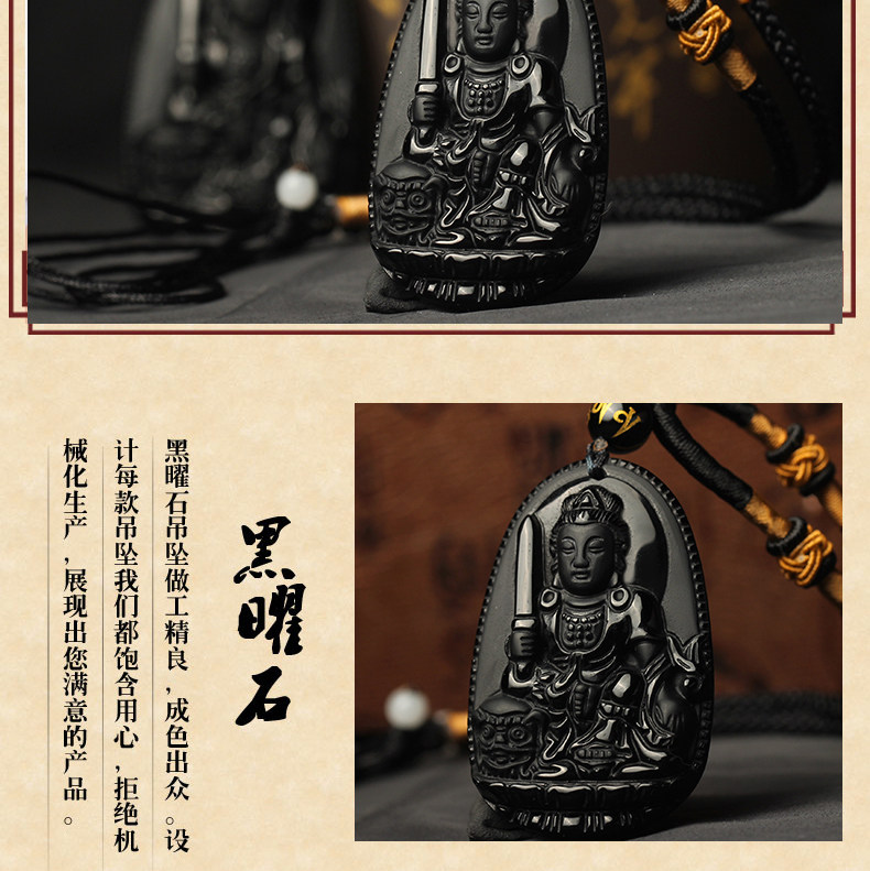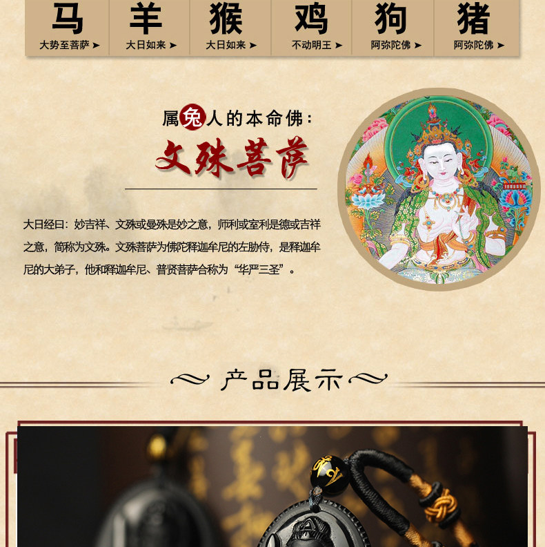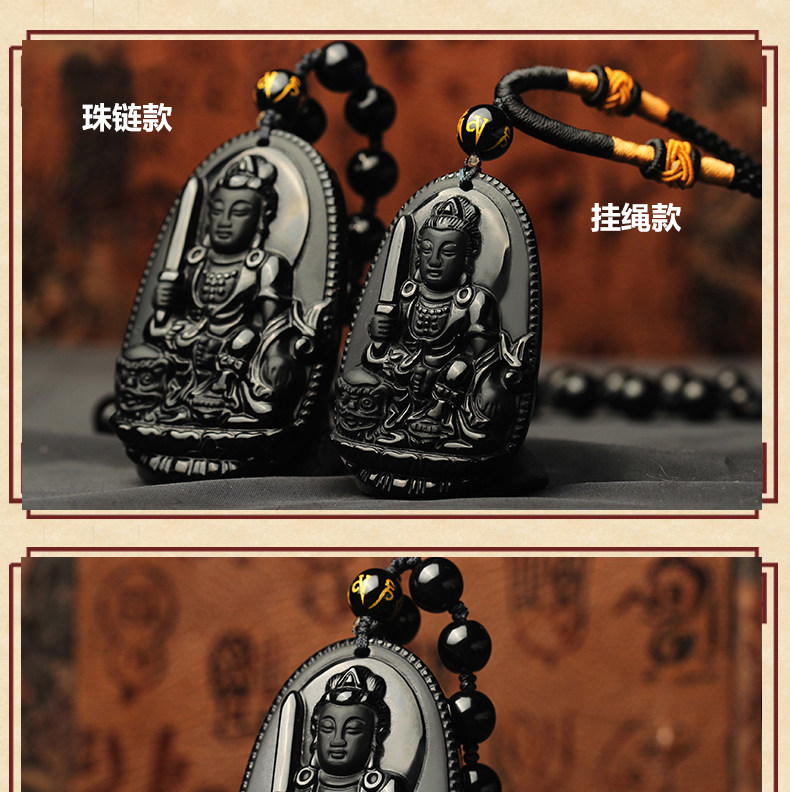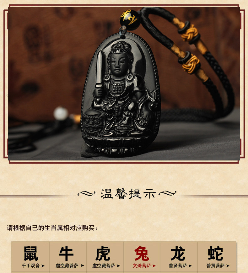 开光乌金黑曜石生肖属兔文殊菩萨吊坠本命佛守护神男女项链情侣款