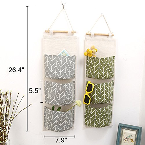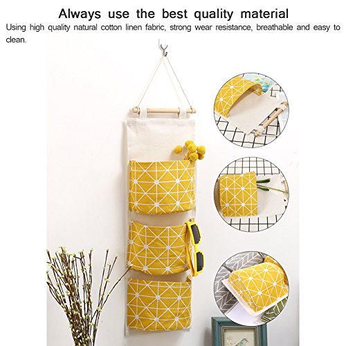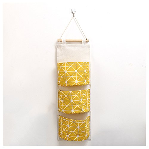 HaloVa Door Organizer, Wall Hanging Bag, Creative Waterproof Cotton Linen Fabric Wall Door Closet Hanging Storage Bag Organizer Pockets Case, Three Layers, Yellow