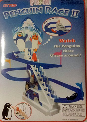 Playful Penguin Race II Toy is a fun fidget toy. Watch the 3 penguins chase and race each other around the slide. The moving escalator will have you smiling as the penguins take a ride to the top before they rush down the slide. This Playful Penguin Race II toy is sure to add laughter and joy to your day.Feature