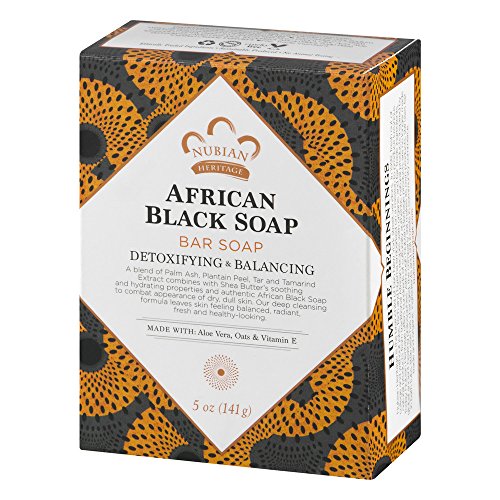 Nubian heritage African black bar soap is deep cleansing with oats, aloe and vitamin e. African black soap, made from palm ash, tamarind extract, tar and plantain peel has been used in Africa for centuries to treat eczema, acne, oily skin, psoriasis, and other skin ailments. Historical references to shea butter, a staple of African pharmacology, date back to the reported shea butter caravans of Cleopatra's Egypt. Nubian heritage's authentic African black soap combines shea butter's healing and hydrating properties with the ancient medicinal properties of palm ash, plantain peel, tar and tamarind to balance and resolve problem skin. Nubian heritage's deep cleansing formula aids exfoliation and promotes new cell growth to reveal radiant, fresh, even and healthy skin. Nubian heritage's natural, herbal and aromatic recipes help to bring balance to the body, physically, emotionally and spiritually. Nubian heritage's natural ingredients and our customized fragrance profiles are designed to bring balance into our lives, balance is what Nubian heritage believes is at the root of all healing, and Nubian heritage delivers healing benefits through creating and establishing balance and harmony.Feature