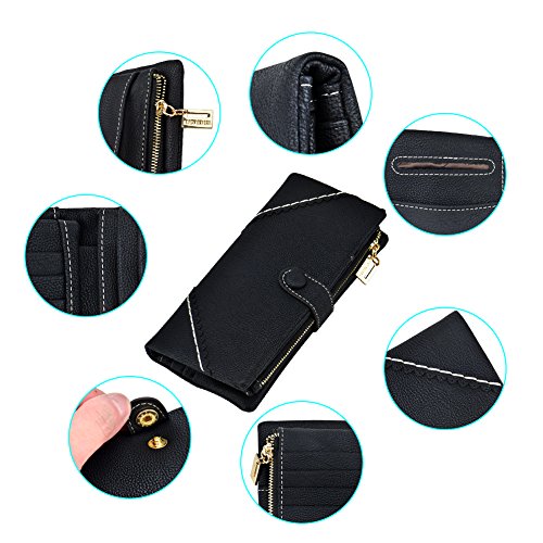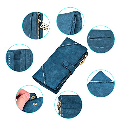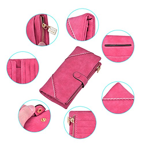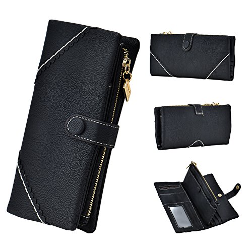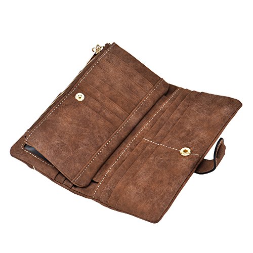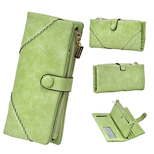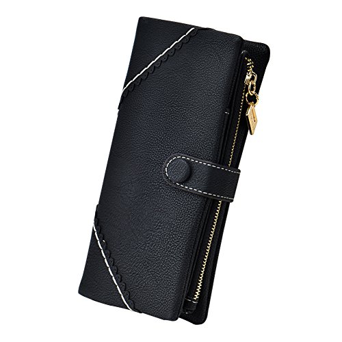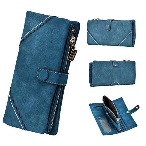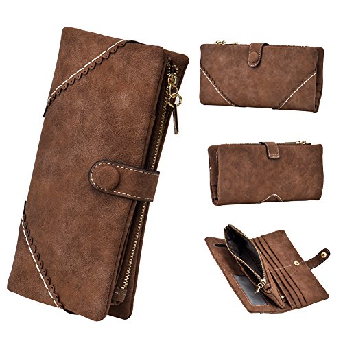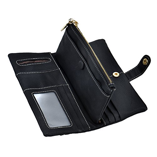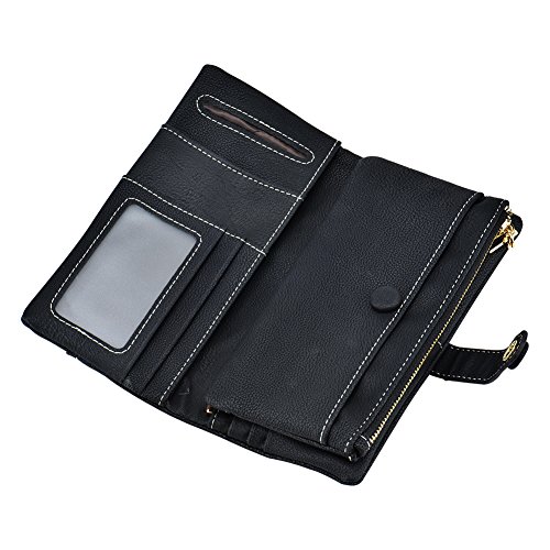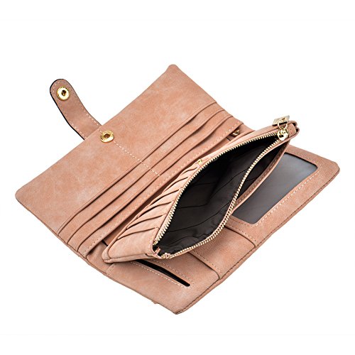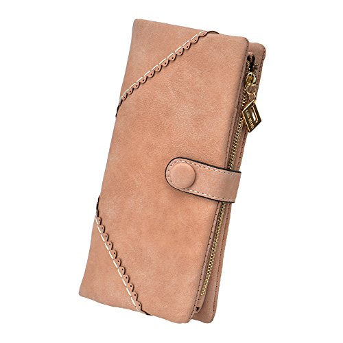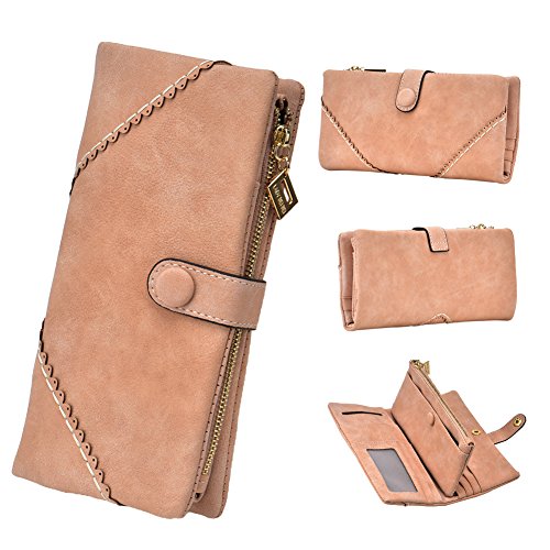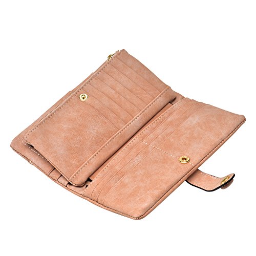 TechSmile Damen Leder Geldborse Geldbeutel Damen Lange Damenhandtasche mit Knopf-stieg