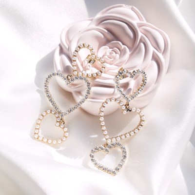 #트리플 하트 진주 롱 귀걸이