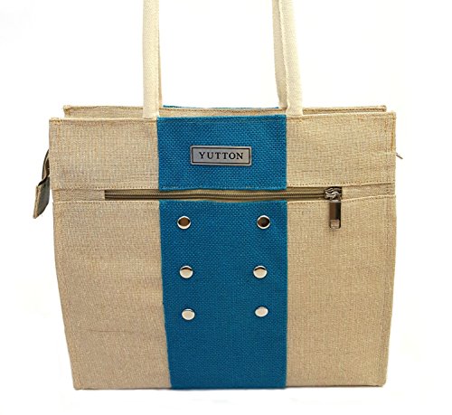 Yutton Designs Fine-Jute Premium Tote Shoulder Handbag with Metal Buttons Design