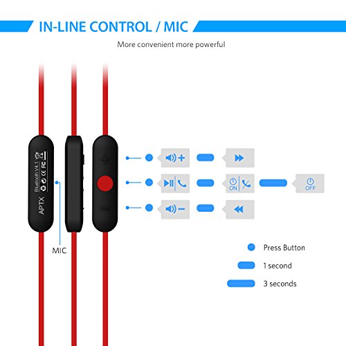 -. Title : Bluetooth Earphones, SoundPEATS Q11 4.1 Wireless Sport Headphones Sweatproof Stereo Earbuds Headset In-ear Secure Fit Running Gym Exercise Earphones with aptX, built-in Mic(Black/Red)