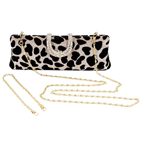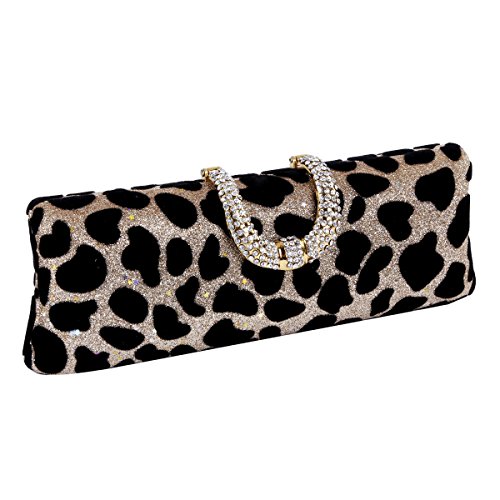 Damara Women Leopard Rhinestone Snap Case Evening Clutch Handbag