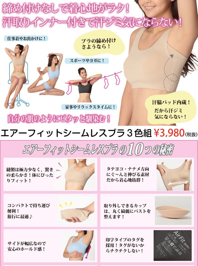 エアーフィット シームレスブラ3色組 |