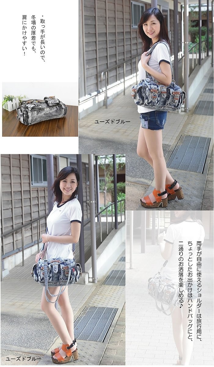 ■お出かけや、ショッピング、さらに、旅行など、地図や貴重品など、必要なものをコンパクトに持ち運びできます。 ■程好い厚みのある、安心感溢れるデニム素材です。 耐久性に優れ、丈夫で汚れに強い素材。付属のパーツは厚めの牛革を使用しています。
