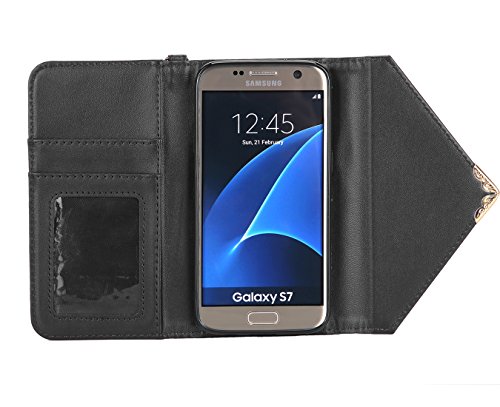 Galaxy S7 Wallet Case, Crosspace® Samsung S7 Envelope Flip Handbag Shell Women Wallet PU Leather Magnetic Folio Cover Cases with Credit Card ID Holders Wrist Strap for Samsung Galaxy S7 5.1"-Black