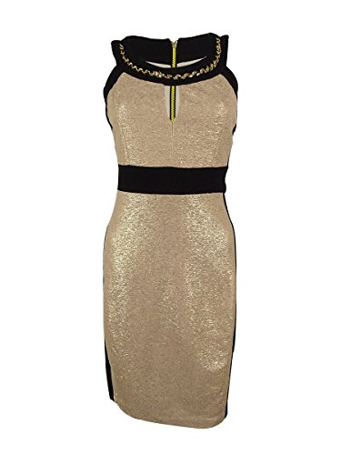 Jax Women's Chain Detail Neck Line Metallic Knit Sheath
