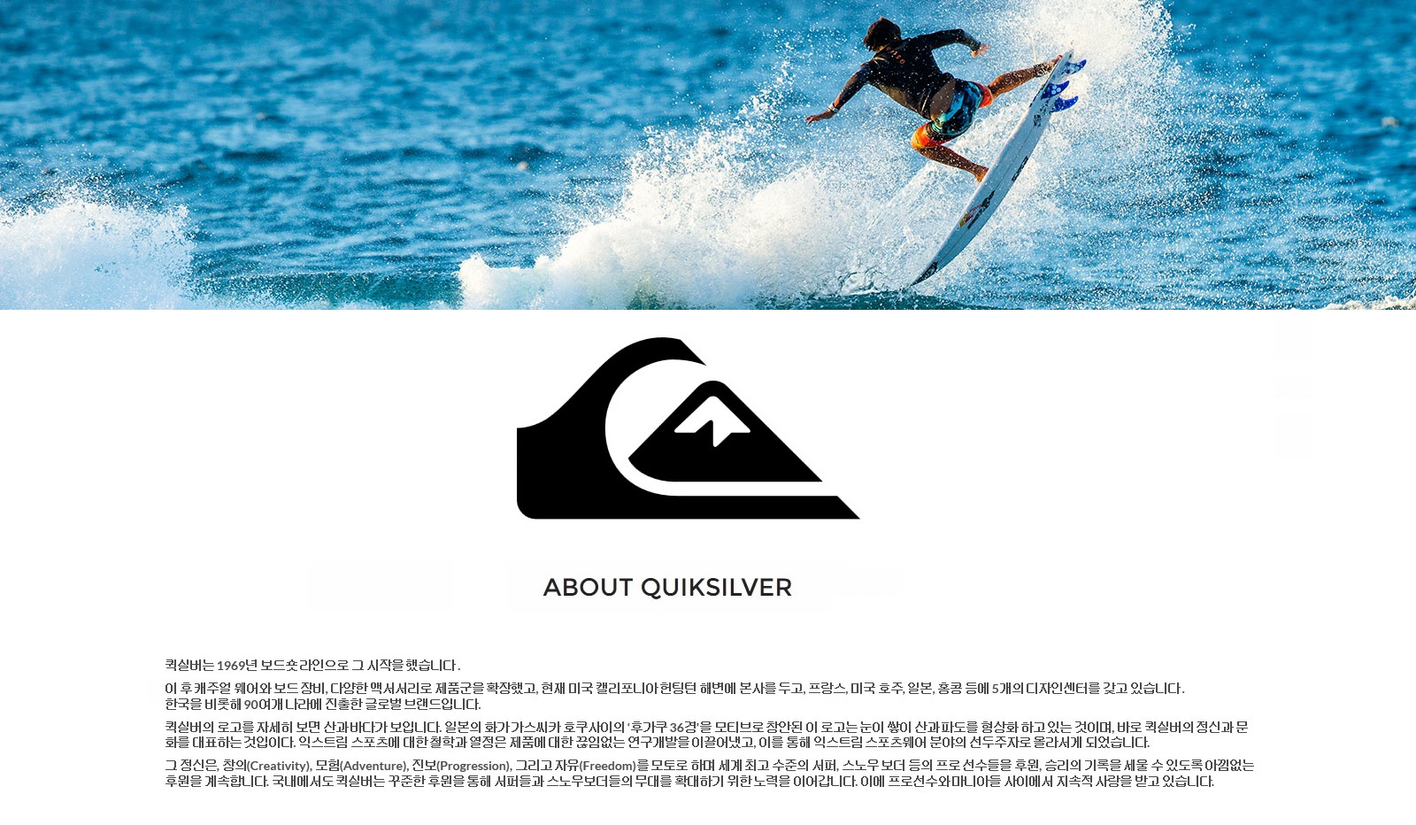 전면 퀵실버 로고와 소매의 레터링이 돋보인다.