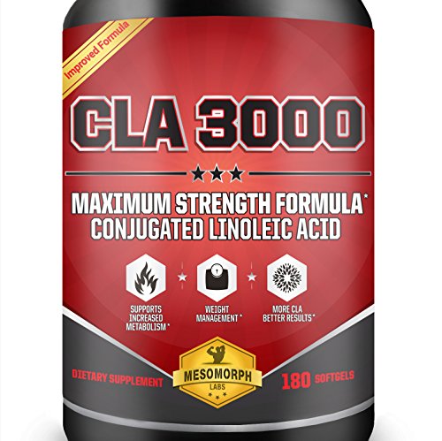 -. Feature : CLA 3000 MAXIMUM POTENCY - **Now With 180 Softgels & 45 Day Supply** - Contains 3000mg (2 softgels) CLA serving! CLA promotes healthy fat loss by increasing your body's metabolism without added stimulants. Keep the muscle, Lose the fat with CLA 3000. Researched clinical trials sest CLA may reduce body fat mass. CLA 3000 is derived from safflower oil. Great for weight loss support at any time of the year! Along with a healthy diet & exercise program, CLA helps promote lean body fat reduction. / CLA WORKS OR YOUR MONEY BACK! - There's no risk when you order, if you aren't satisfied you'll receive 100% of your money back! / 3000mg CONJUGATED LINOLEIC ACID - CLA 3000 is maximum strength, plant-derived safflower CLA with 3000mg CLA per serving. Very high CLA value compared to other top brands! CLA 3000 meets daily recommended dosages, and is derived from Safflower Seed Oil at 80% standardization. CLA 3000 is Made in the USA, and comes with a 100% money-back guarantee. We recommend quality diet & exercise when taking CLA & other dietary supplements. / UNMATCHED SATISFACTION! - This is a science-backed omega-6 weight loss supplement - This CLA 3000 formula originates from only premium certified sources of high quality CLA. Conjugated linoleic acid can be stacked with low carbohydrate foods for maximum results. Add high Vitamin A foods such as yams & carrots, along with antioxidants such as spinach to start seeing immediate results! / WHY MESOMORPH LABS? - Customers are #1 to us, by ordering with us you will be eligible for unbelievable promotions you'll find no where else - check your bottle for details! Many companies sell products, few companies sell programs. Along with a 100% money back guarantee, you will receive cutting-edge products at their effective daily recommended dosages. With satisfied customers from all over the world, you can be assured Mesomorph Labs will deliver for you!