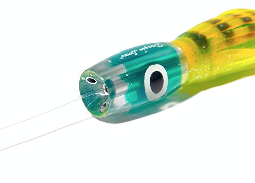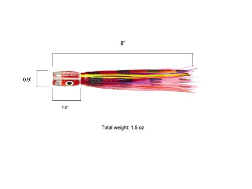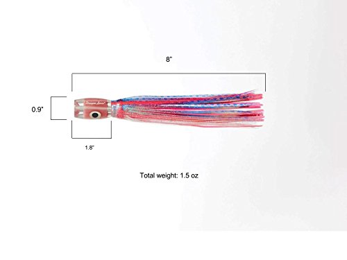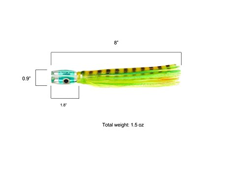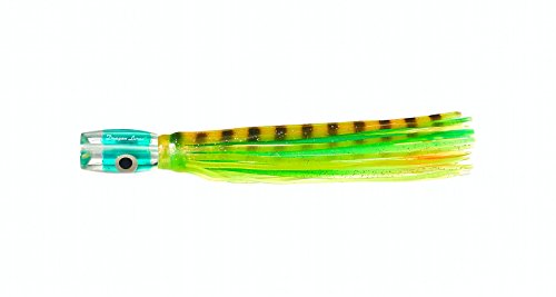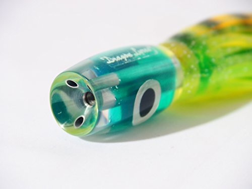 Studio : Dragon Lures Publisher : Dragon Lures Binding : Misc. Product Description Carefully crafted lures made one a time in Costa Rica. Turbo Dragon is designed with 3 additional tubing as intake and a concave head creating a heavy bubble trail that attracts predatory fish. Runs straight at all time and speed. Favorite for Mahi Mahi and Sailfish, has proven to be excellent, durable, and reliable lure to have. Available in 5 colors, lures have a total length of 8 inches and a weight of 1.5 once, feature that provides the angler with the advantage of trolling both medium to big game fish. 0