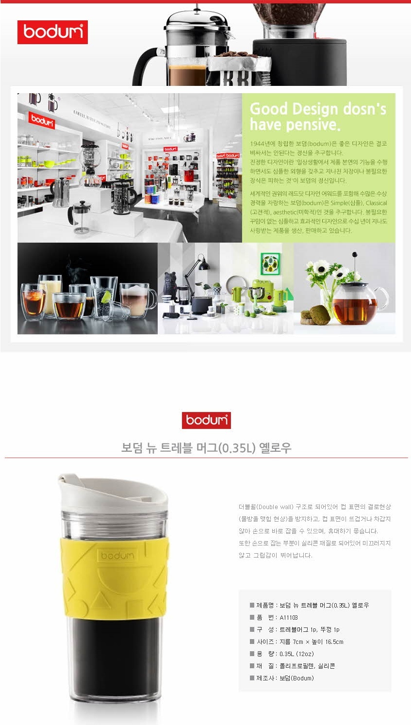 New Bodum Travel Mug (0.35L) Yellow Mug tumbler