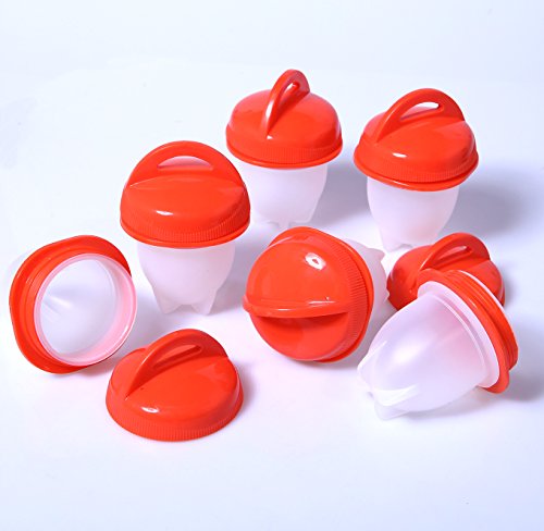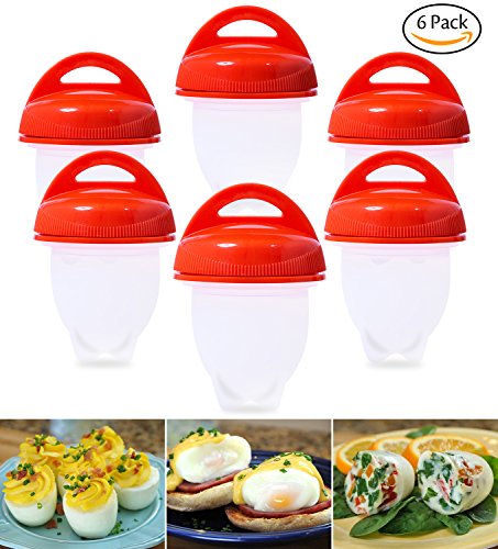 Ozera Egg Cooker - Silicone Egg Boiler, Cooking Hard Boiled Eggs without the Shell, Hard & Soft Maker, Non Stick Silicone, BPA Free, Set of 6 Specifications - Color: Red and White