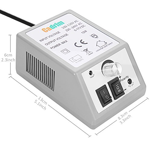 Features: Easy to use dialing speed control. Low noise and vibration for smooth and long-time operation. Forward and reverse operation switch. Mechanical collect for security the bit firmly and easy to pull up. Suitable for pedicure and manicure. For professional salon or home use.