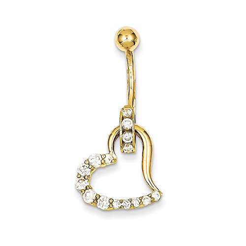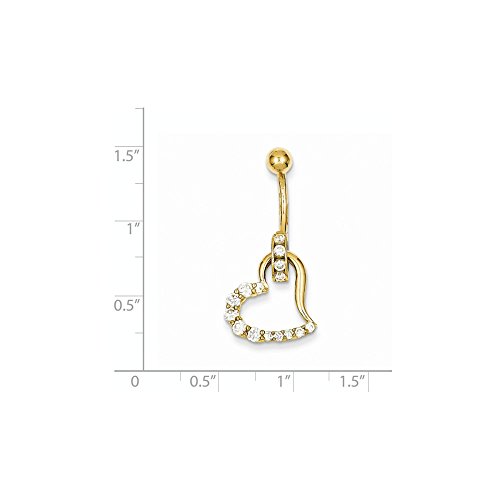 Product DescriptionSolid 10k Yellow Gold with CZ Cubic Zirconia Huggy Heart Belly Dangle (16mm x 33mm)0