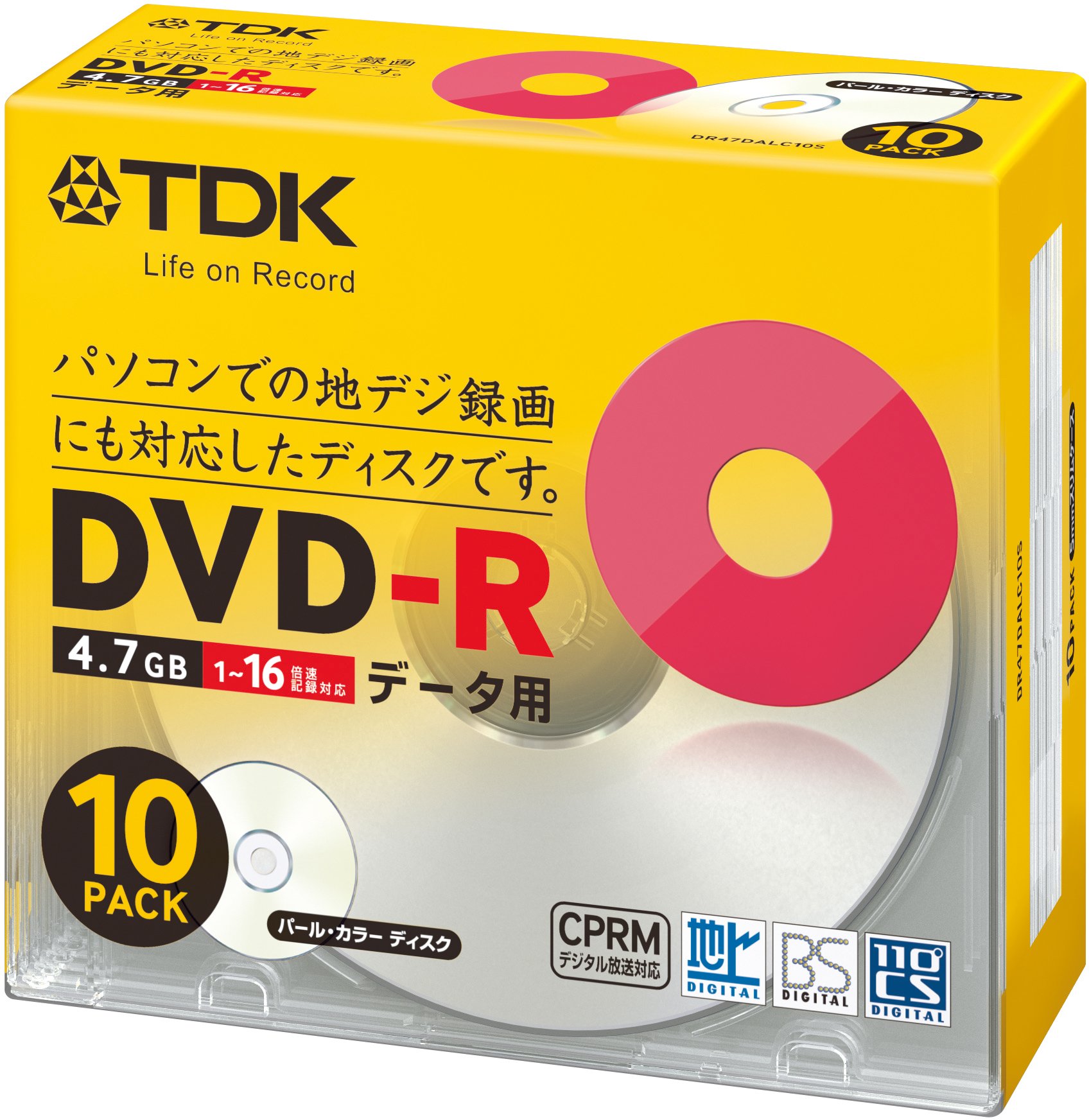 For TDK data DVD-R CPRM correspondence 4.7GB 1-16 speed corresponding Pearl color disc 10 sheets pack 5mm slim case DR47DALC10S
