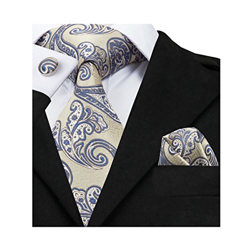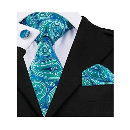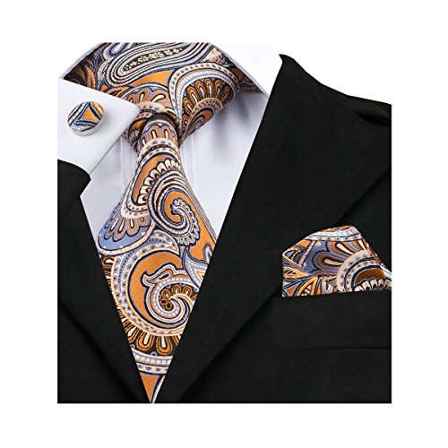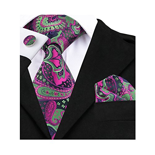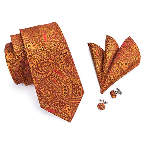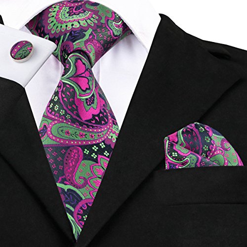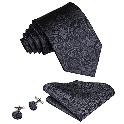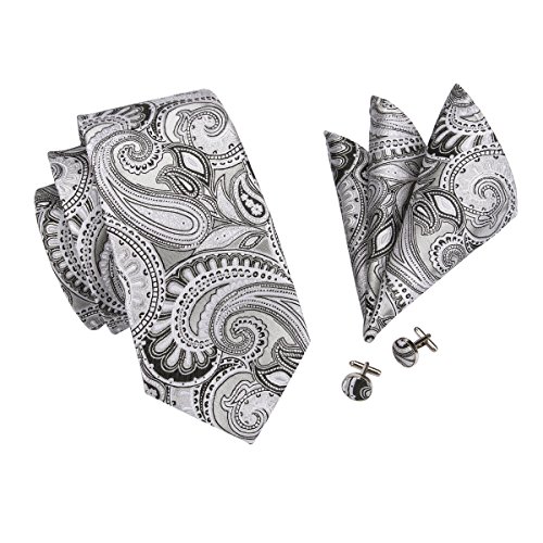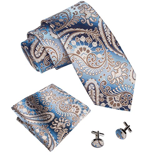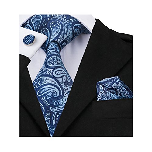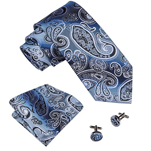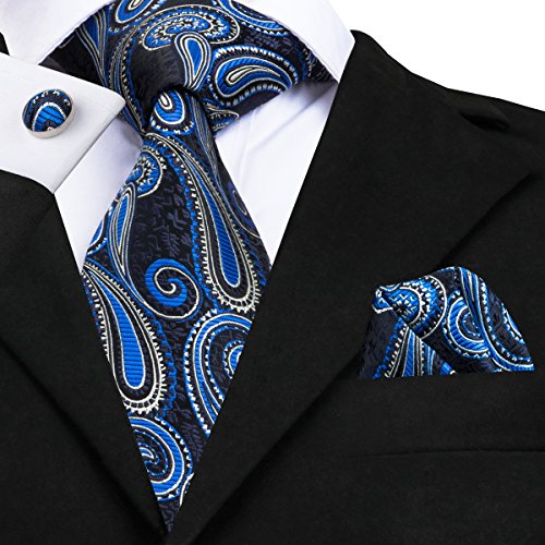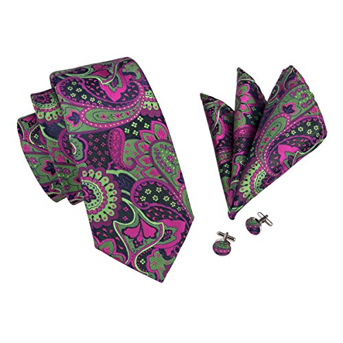 Why choose us? Material: Silk Craft: Jacquard Woven Size: 59.06"(150cm) in length and 3.35"(8.5cm) in Width Package included: necktie hanky 2 cufflinks