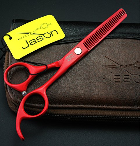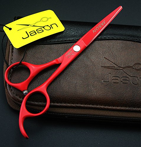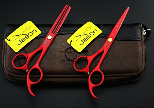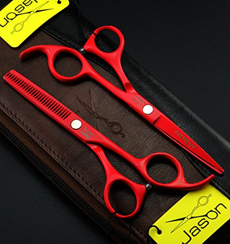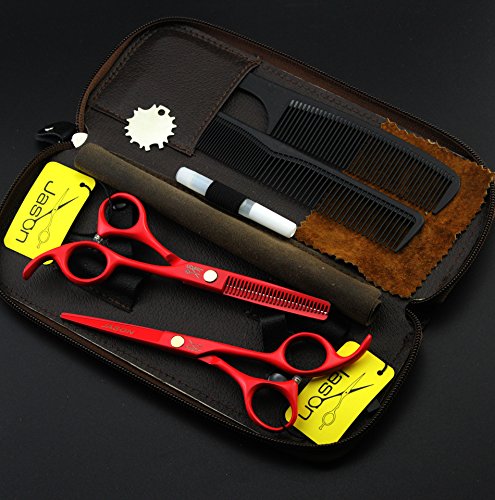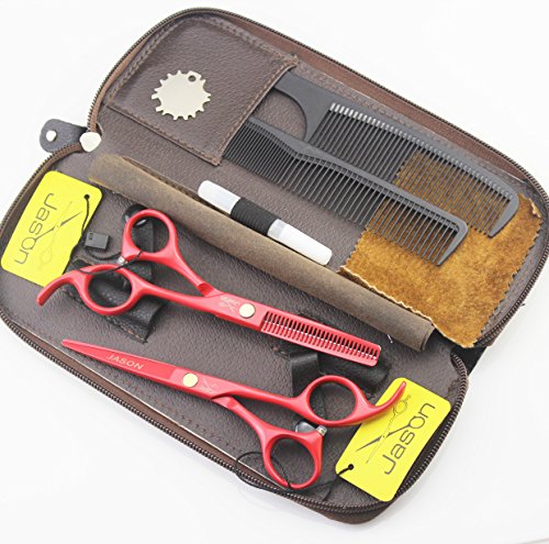 Jason 5.5 Inch Red Color Japan Stainless Steel Hair Cutting and Thinning Texturizing Shears Scissors with Combs and Oil Professional Barber Haircut Shears Kit