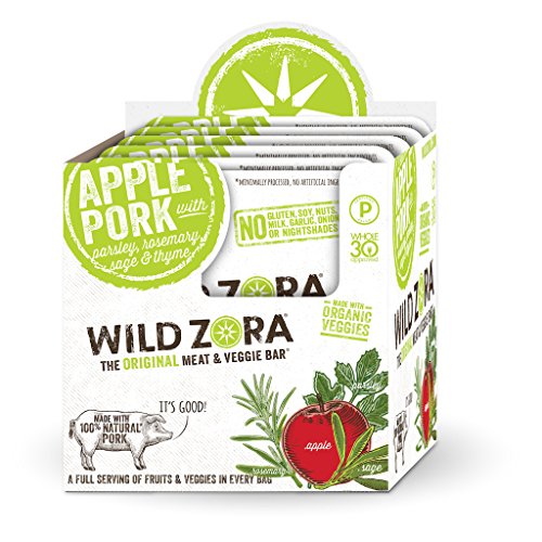 Wild Zora Apple All Natural Pork & Organic Veggie Bars (10 pack) - AIP-friendly, No Nightshades, Gluten-Free, No Antibiotics, No Added Hormones