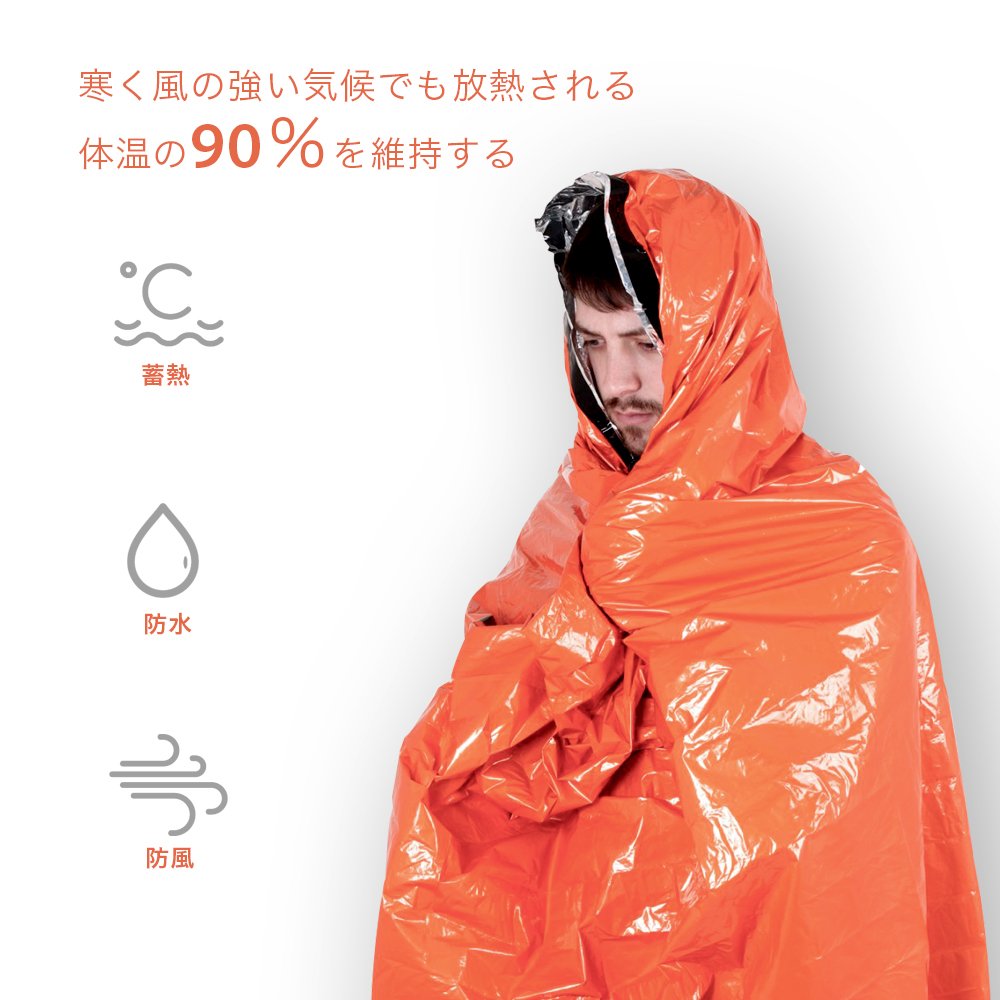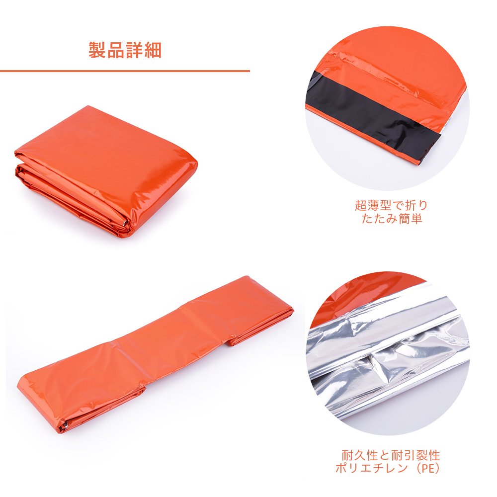 This emergency sleeping bag has a warming function, keeping you warm in bad weather and evacuation.