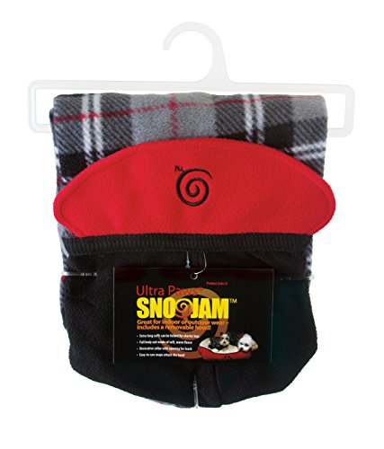 Studio : Ultra Paws Publisher : Ultra Paws Binding : Misc. Product Description Ultra Paws SnoJam is a polyester fleece canine pajama featuring full-body comfort for indoor and outdoor warmth. Comes with decorative collar with opening to attach leash and removable hood that easily snaps on or off. Colors: Black and grey plaid, black hood and cuffs, and red collar and accents. Machine wash with warm water, gentle cycle. Do not bleach or dry clean. Tumble dry low. Cool iron if needed. 0
