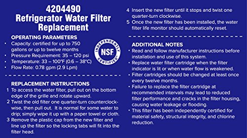 Sub-Zero 4204490 Refrigerator Water Filter Replacement, Certified to NSF/ANSI 42