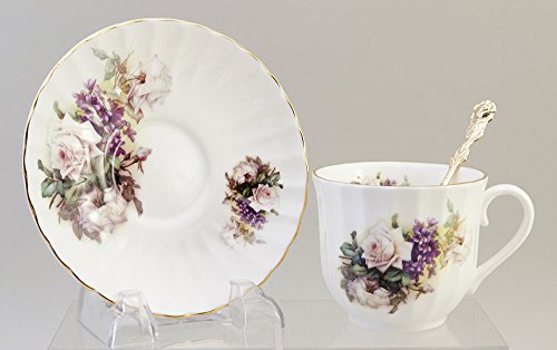 -. Title : English Bone China White Roses Tea Cup & Saucer