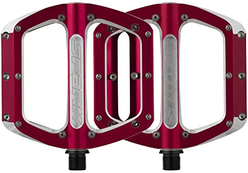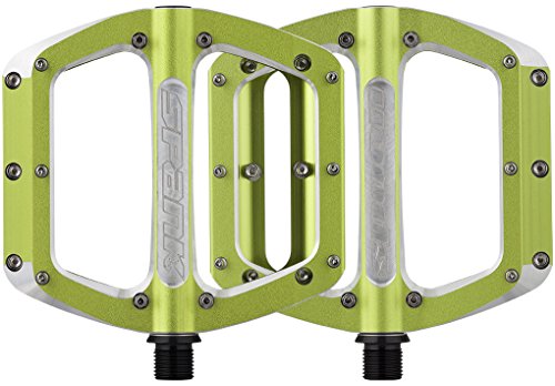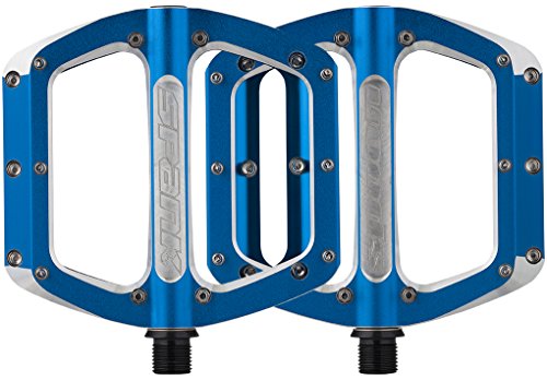 Studio : Spank Publisher : Spank Binding : Misc. Product Description SPANK Industries set out to make the perfect pedal for every rider, and the SPOON Flat Pedal is a true custom upgrade for riders of all ages and sizes! These size specific SPOON Pedals offer three platform width options for riders of any age or foot size. The extra wide pin pattern on SPANK's SPOON 110 Pedals spread load around the perimeter of large sized shoes, offering more predictable grip and enhanced support over traditional size flat pedals. 0