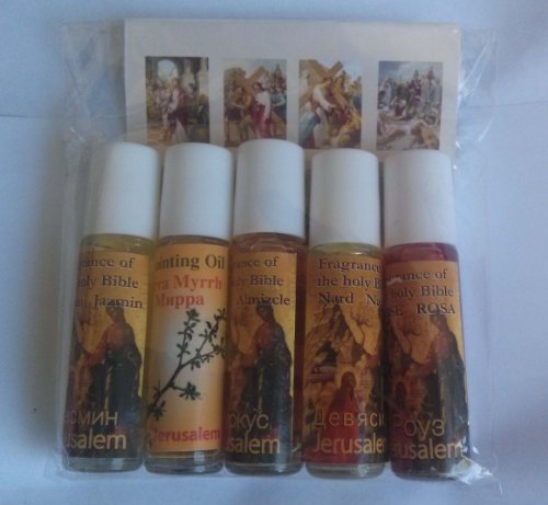 Set of 5 Roll-On Anointing Oils Jasmin Myrrh Musk Nard and Rose from Jerusalem