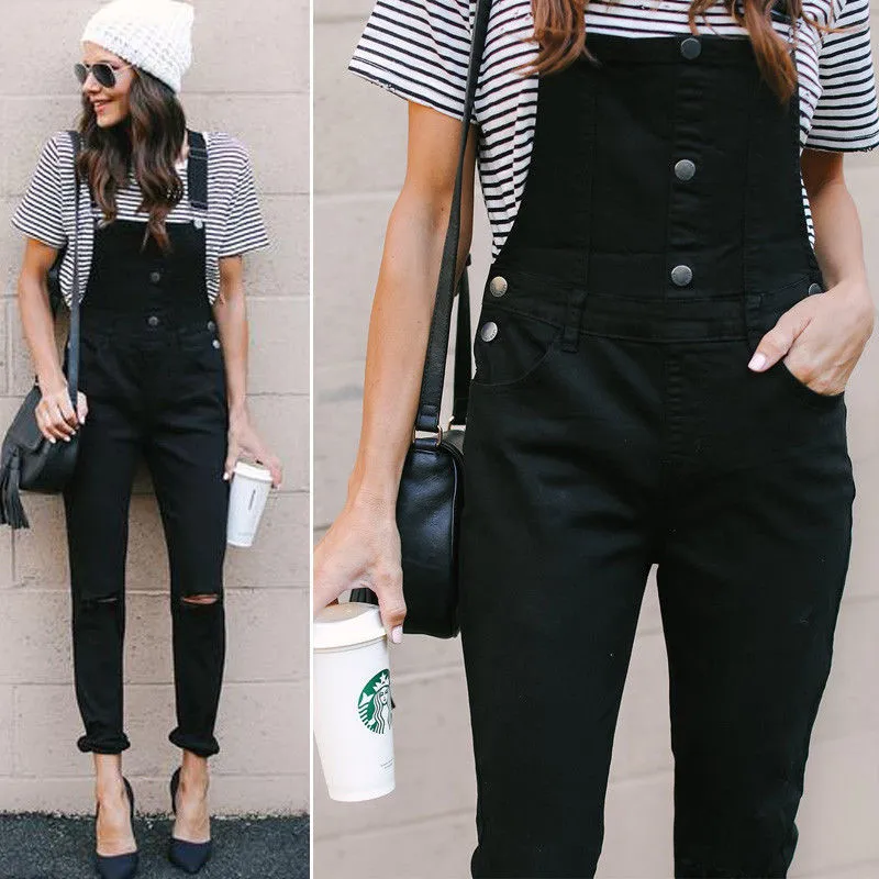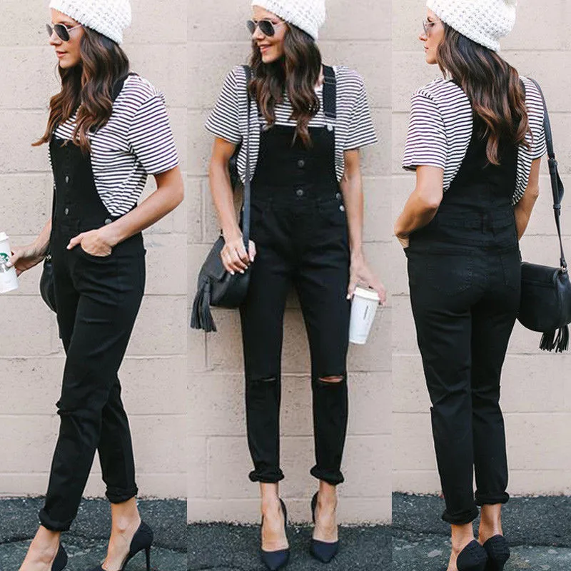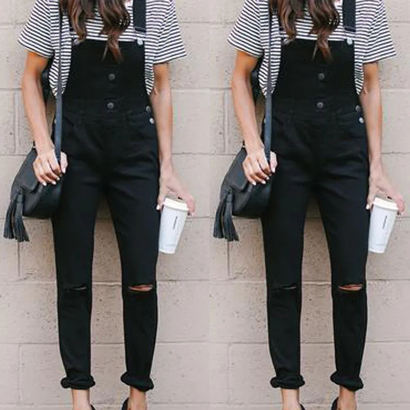Model Number:Women Sleeveless Holes Destroyed Baggy Denim Bib Jumpsuit Romper
