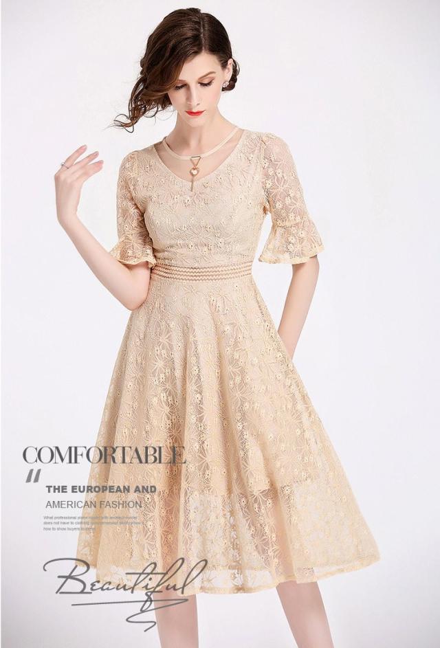 レース 刺繍 フリル ドレス ワンピース アクセサリー付き 結婚式 二次会 パーティー 女子会