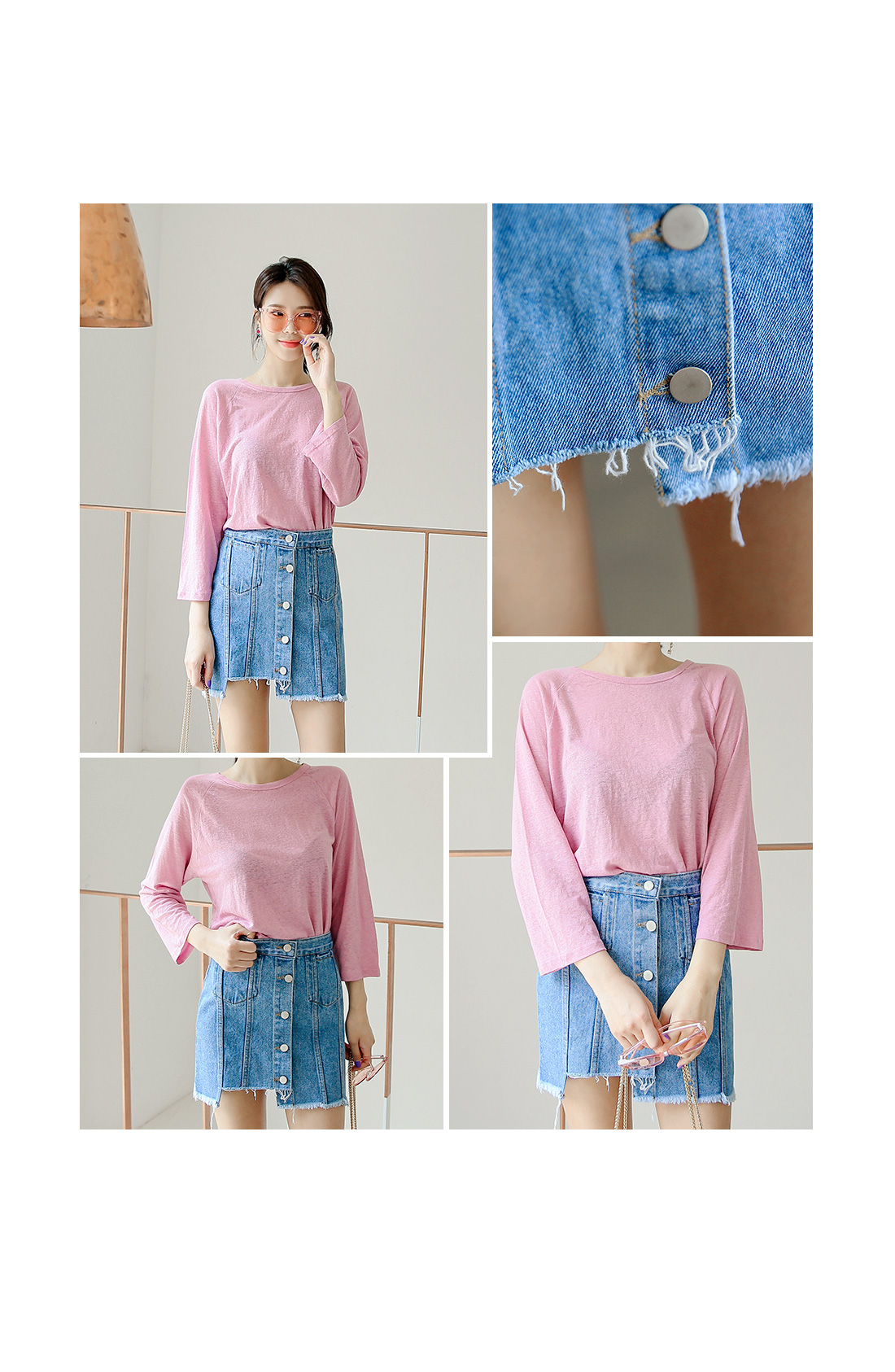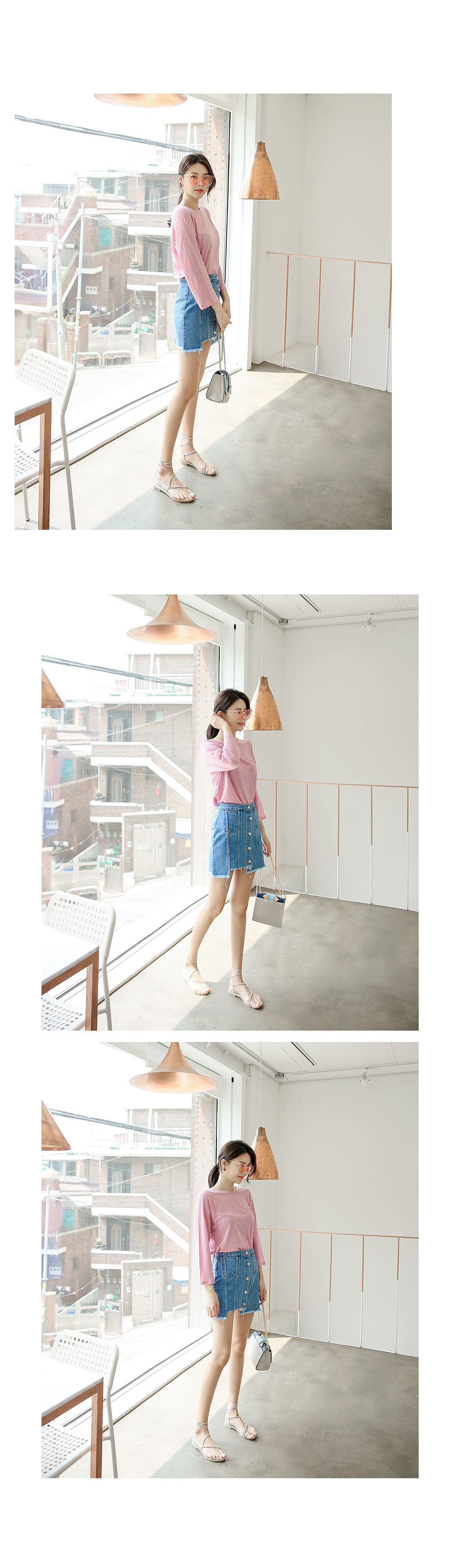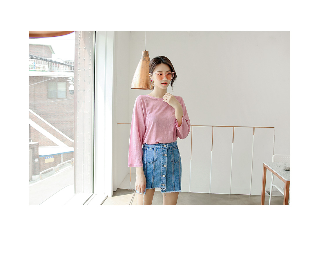 적당한 핏감의 라운드 넥크라인의 베이직한 티셔츠 아이템을 소개해드려요^^ 계절에 구애없이 즐길 수 있는 두께감으로 부담없이 데일리룩을 연출할 수 있는 티셔츠 아이템이랍니다~ 베이직한 디자인으로 팬츠, 스커트 등 다양한 아이템들과 코디매치할 수 있는 활용도 높은 티셔츠 아이템이예요~ 베이직한 디자인으로 다양한 스타일링 연출이 가능한 티셔츠 아이템을 적극 추천해드려요~