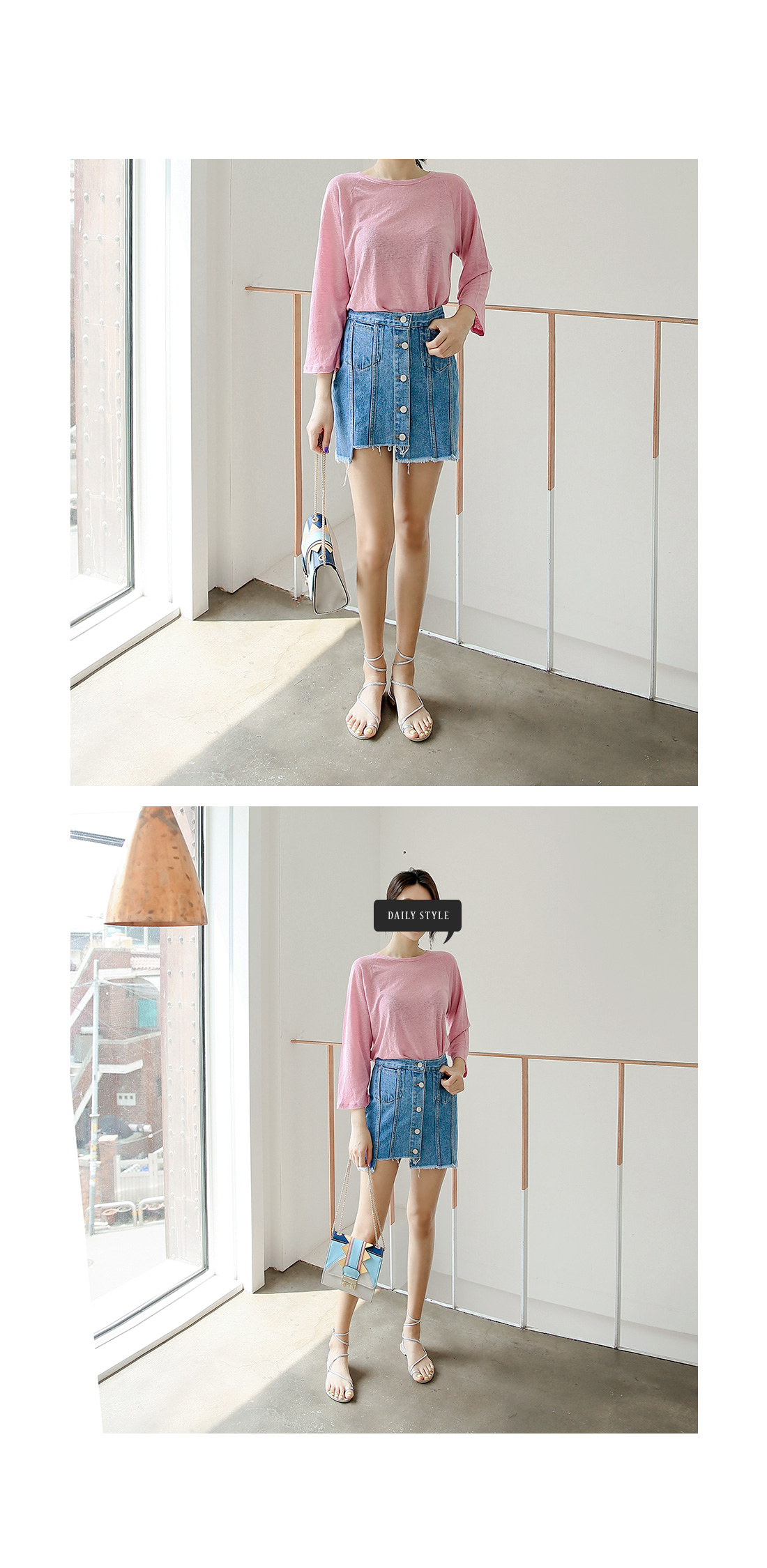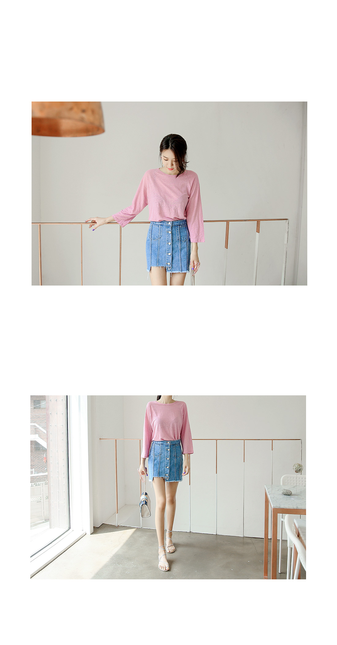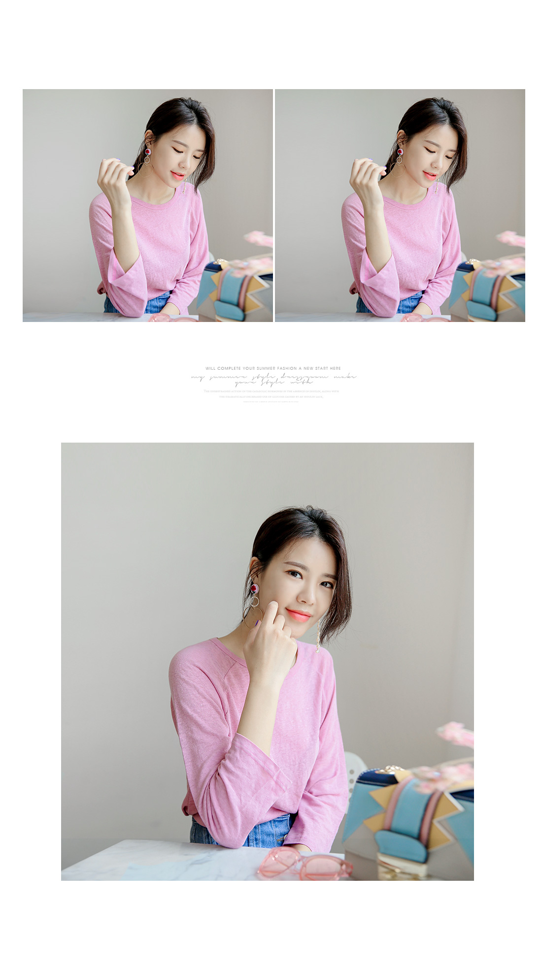 적당한 핏감의 라운드 넥크라인의 베이직한 티셔츠 아이템을 소개해드려요^^ 계절에 구애없이 즐길 수 있는 두께감으로 부담없이 데일리룩을 연출할 수 있는 티셔츠 아이템이랍니다~ 베이직한 디자인으로 팬츠, 스커트 등 다양한 아이템들과 코디매치할 수 있는 활용도 높은 티셔츠 아이템이예요~ 베이직한 디자인으로 다양한 스타일링 연출이 가능한 티셔츠 아이템을 적극 추천해드려요~