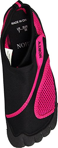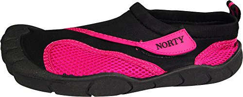 -. Binding : Apparel -. Brand : NORTY -. Department : womens -. Feature : BREATHABLE MESH Panels allow for air and water to flow and dry quickly / NO-SLIP GRIP Rubber Outsole with Good Traction / STRETCH NEOPRENE UPPER for Easy Pull On / SECURE AND EASY FIT with an Adjustable Drawstring Tight Cord / NORTY is a Registered Trademark -. ProductGroup : Shoes -. ProductTypeName : SHOES -. Title : Norty - Ladies Skeletoe Aqua Sock Wave Water Shoes Slip on