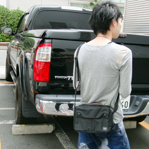 -. Title : ポーターエルファイン(PORTER L-fine) PORTER×ILS共同企画 スクウェアショルダーバッグ Square Shoulder Bag ブラック(裏地:レッド) Black(Backing:Red)