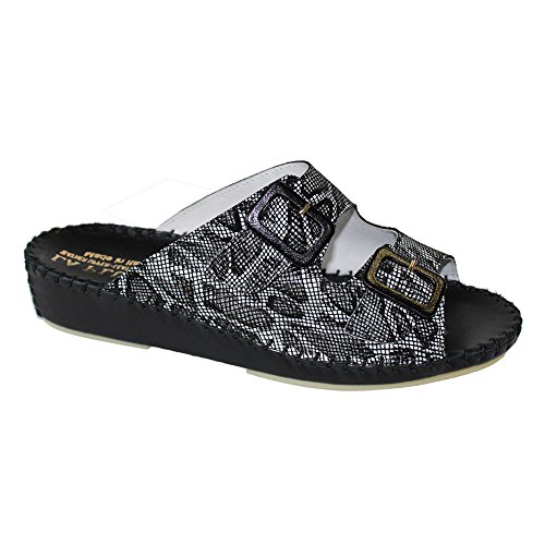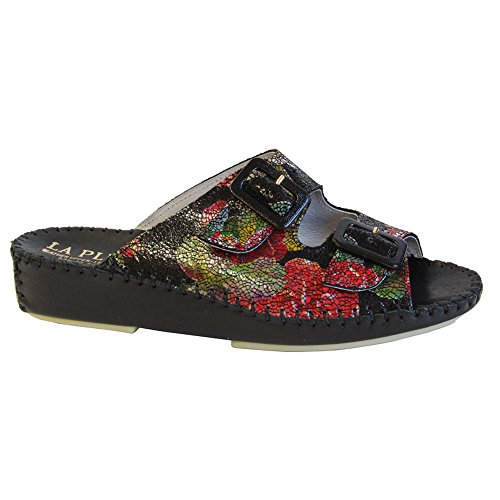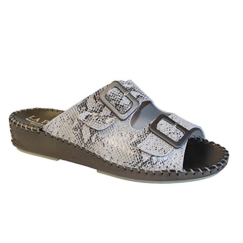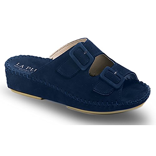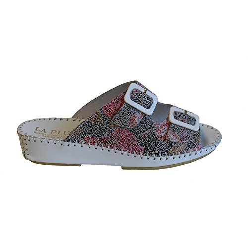 Binding : Apparel Product Description Genuine leather upper with adjustable buckle straps for a secure, personalized fit. Hand-sewn leather insole ensures an abrasion-free environment for all-day wear. Contoured footbed to cradle and support the foot for all day comfort Synthetic outsole delivers long-lasting durability on a variety of surfaces. Made in Italy Available in a variety of colors and prints, La Plume's Jen is sure to become an everyday favorite. Its sturdy leather upper, handsome whipstitching, and cushioned and perforated footbed are designed for supreme comfort, and its simple style makes it versatile. See all Product Description 0