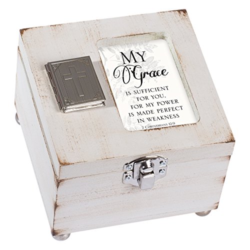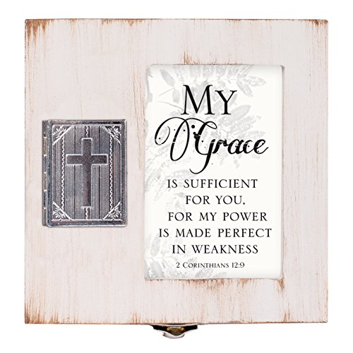 My Grace is Sufficient for You 4.5 x 4.5 inch Distressed Coral Wood Locket Jewelry Keepsake Box