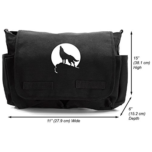 -. Title : Howling Wolf Moon Heavyweight Canvas Messenger Shoulder Bag