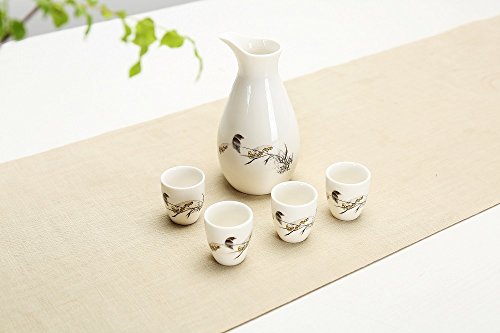 (Gift Pro)/Kitchen Dining/Tableware/DIRECT FROM USA/Gift Pro 5 Pcs Japanese Style Sake set Hand Painted Design Porcelain Pottery Traditional Cerami...