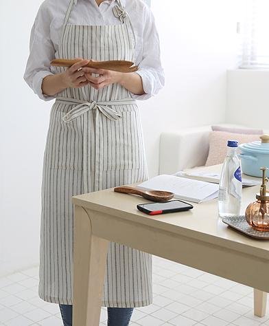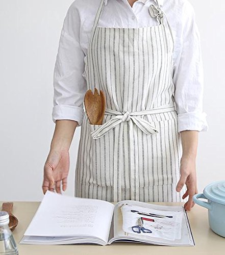 Cozymom Japanese Style Cross-front Smock Natural Cotton Apron-black Natural Washing Color (H:100cm)