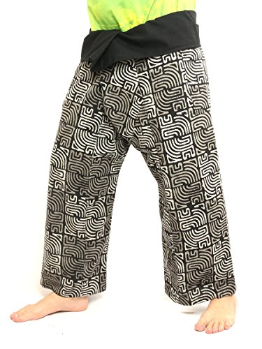 Binding : Apparel Product Description Thai fisherman pants are the tradtional pants from Thailand. This pants is made of high quality cotton and in a one size fits most design, very comfortable to wear. Size M: Waist: 50 inches. Hips:54 inches; Pants length:41 inches; Inseam:23 inches. Size L:Waist: 54 inches. Hips:56 inches; Pants length:44 inches; Inseam:25 inches. Size XL:Waist: 54 inches. Hips:58 inches; Pants length:48 inches; Inseam:28 inches. The pants are unisex, suitable for men and women but please compare the size of the pants, especially length, to similar pants you already own. Excellent for times when loose and comfortable is a must. Ideal as - casual wear