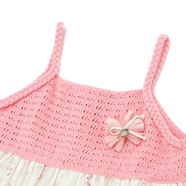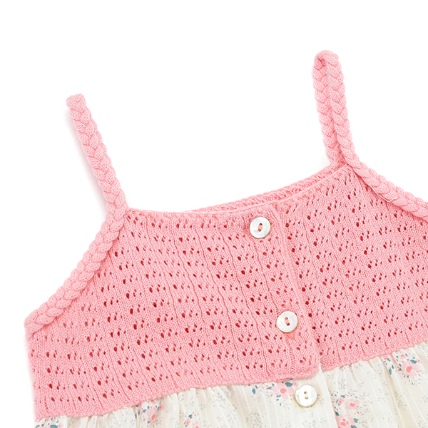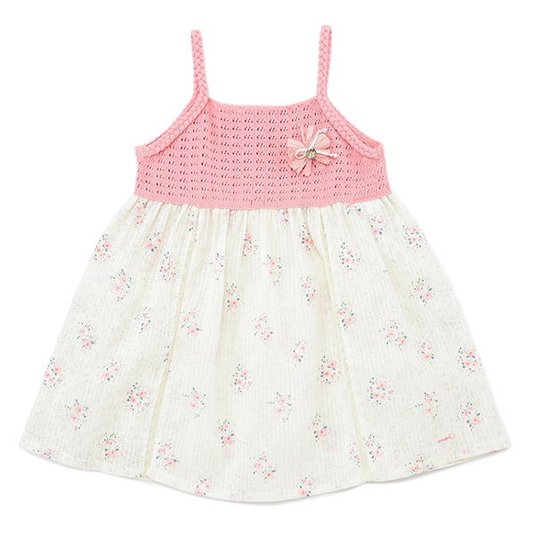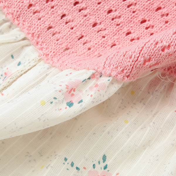 러블리한 핑크컬러감의 플라워 패턴 스커트와 고급스러운 니트 상의를 매치한 원피스 입니다.