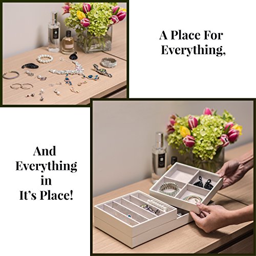 ★ STORE EASILY: These stackable jewelry trays hold all your jewelry and conveniently stack or separate so that you can store them on your dresser or in your drawers much more easily than a conventional jewelry box