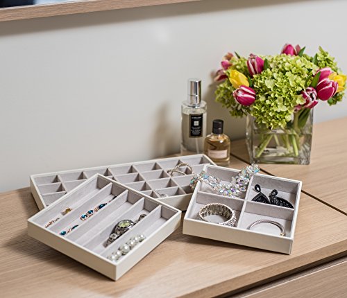 ★ STOCK YOUR HOME® 37-SLOT JEWELRY ORGANIZER SET: With 37 total compartments of different sizes, these jewelry storage trays offer a place for her to store her rings, earrings, bracelets and watches conveniently.