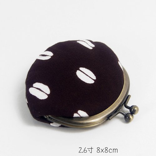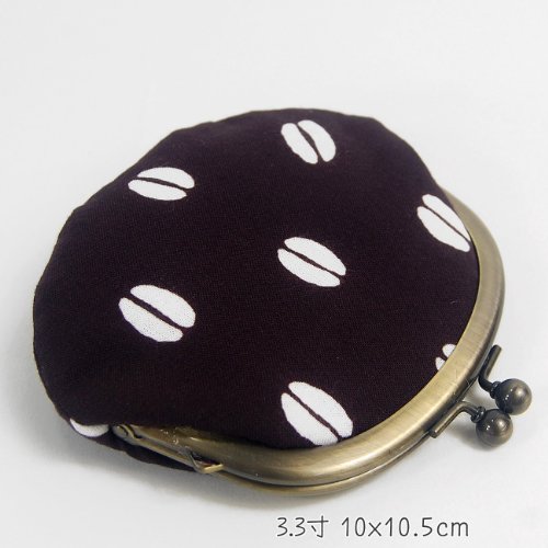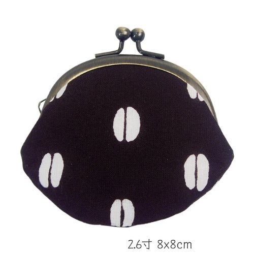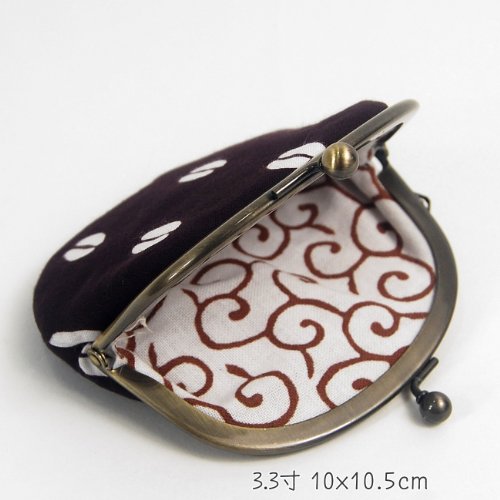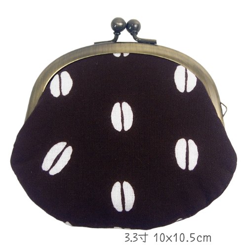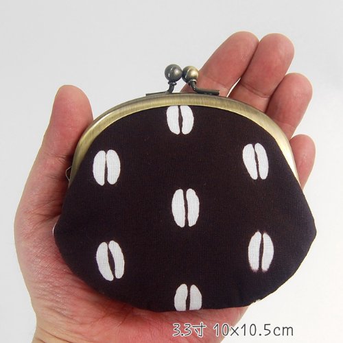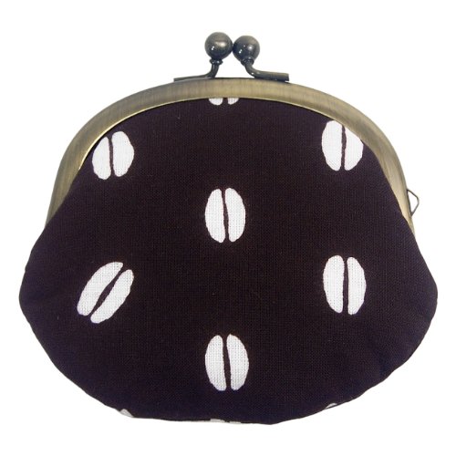 -. Title : がま口(コーヒー豆)手ぬぐい地(綿)こげ茶地/柄白