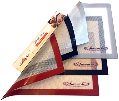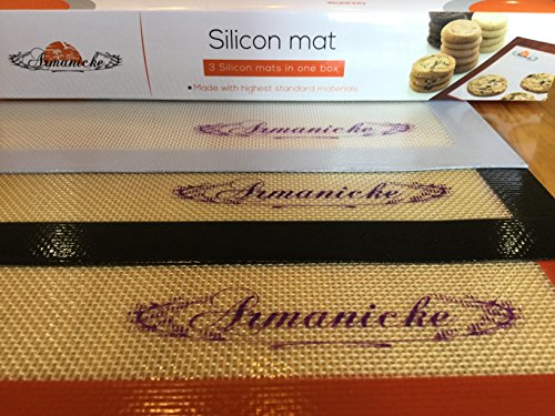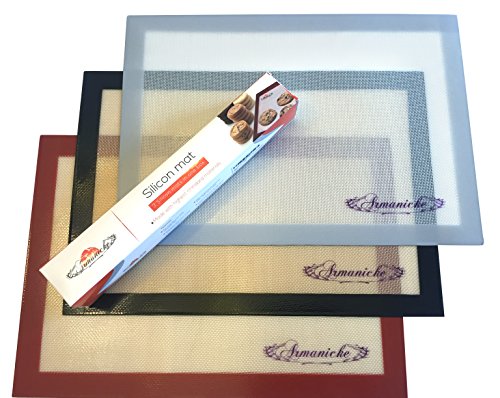 Silicone Baking Mat - Set Of 3 Half Sheets - Non Stick, Eco Friendly, Re usable, Non Toxic, FDA Approved, Baking Cookie Sheets - Kitchen Silicone Baking Liners, Packed In A Box By ARMANICKE